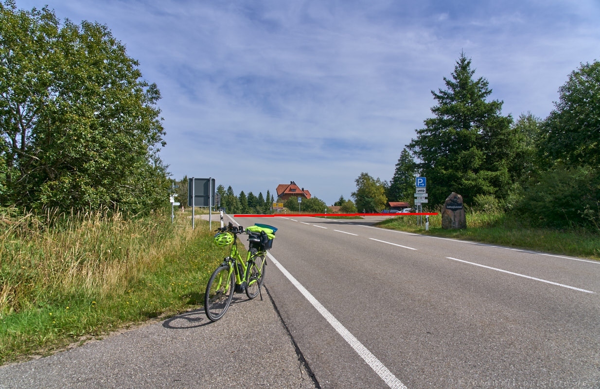 Auf der Paßhöhe verläuft die Grenze des Landkreises Freudenstadt und dem Ortenaukreis (roter Strich)